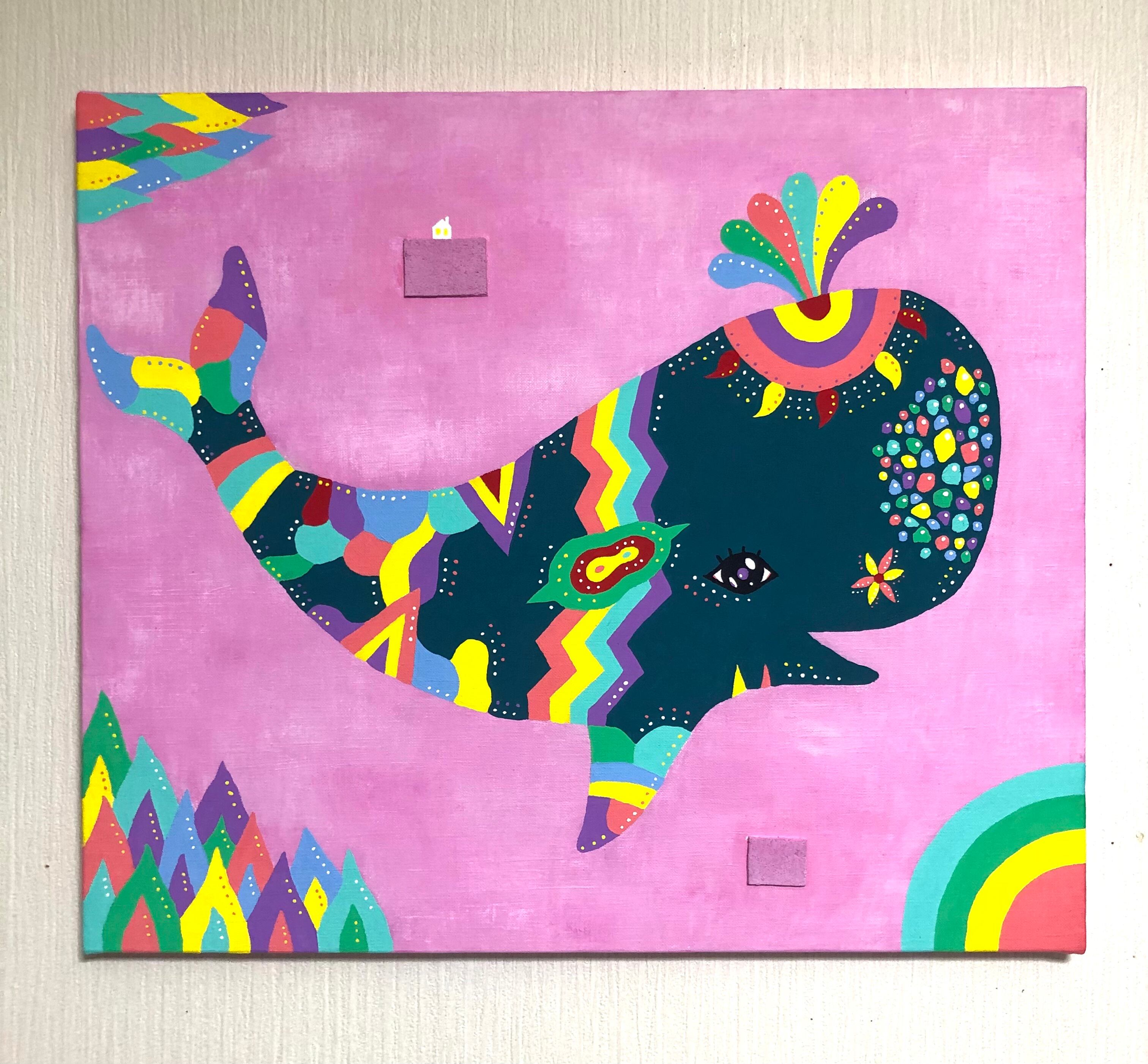 アクリル絵の具、キャンバス、コルク